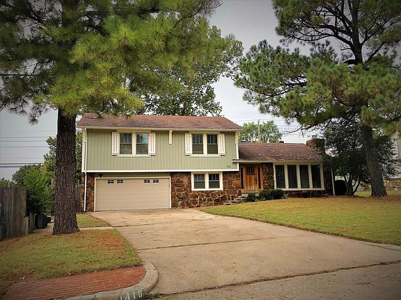 Mid-century modern home with great entry into vaulted living area with fireplace and lots of natural light. This is a "must see" home located in a cozy neighborhood with mature trees and within walking distance to Broken Arrow elementary. Large living area flows into a spacious dining and kitchen with access to beautiful pergola-covered deck. Spacious kitchen with pantry and eating/serving bar. Updated microwave/oven. Master and two bedrooms upstairs. Granite counters/double sinks in master and in hall bath. Fourth bedroom downstairs could serve as office or bedroom. NEW windows in all bedrooms. Window blinds and drapery-ready rods installed. Large utility and half bath downstairs with access to garage and fenced backyard. Large front yard features patio & shade trees. Located in Broken Arrow School District just blocks from the elementary school. Convenient to shopping and commutes to Tulsa. Flexible Lease Term. Pet Fee: $250 per pet (non-refundable)