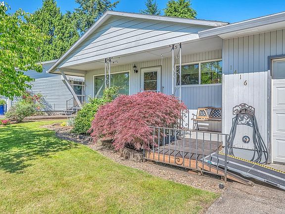 This 1 Level ranch home is in great condition and very well maintained. Featuring a covered front porch, 3 bedrooms and 1 bathroom. Hardwood floors present under all rooms where there is carpet. Nice-sized living room, fireplace with gas insert. Newer appliances in kitchen. Large dining area. Updated bathroom. Manicured front and back yards with sprinkler system and mature landscaping. Fenced private backyard has large 20 x 20 concrete patio, above ground pool and tool shed. Almost new gas hot water heater, forced air gas heat, newer central air conditioning and updated vinyl windows. New electric panel. Extra deep double car garage. Prime location in quiet neighborhood, close to shopping, restaurants, schools, parks and freeway access. [Home Energy Score = 4. HES Report at https://rpt.greenbuildingregistry.com/hes/OR10229295]
