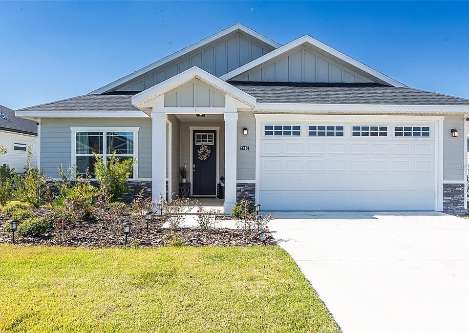Situated in one of the prime spots within Grand Oaks, this home boasts an exceptional location just a few steps away from the community pool and clubhouse. You'll be captivated by this impeccably maintained, move-in-ready residence, featuring 4 bedrooms and 3 bathrooms, offering an abundance of space for you and your family to relax and rejuvenate. With a thoughtfully designed split floor plan this home is adorned with elegant tray ceilings in the living and master areas. The front entrance welcomes you with a convenient mudroom locker, and a separate laundry room adds to the home's functionality. The kitchen is a true focal point, exuding modern charm with a spacious center island adorned with shiplap, a farmhouse sink, gas range, in-wall oven, microwave, and exquisite quartz countertops. This property includes a fully fenced backyard and double sliders that open onto a covered patio, providing a seamless indoor-outdoor living experience. A two-car garage and a backdrop of community space, with no homes immediately behind, offer added comfort and privacy. In addition to its exceptional features, this home's location is supremely convenient, with proximity to the University of Florida, hospitals, shopping centers, grocery stores and much more. This home also qualifies for 100% financing, making it a fantastic opportunity for prospective buyers.