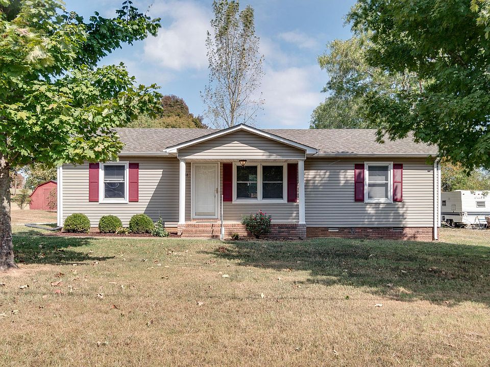 Perfect First Time Home Buyer House or Rental Property! Move In Ready with Hardwoods and large tiled Kitchen. New Tile on the way! Large Bedrooms with Master on separate side with bath. Large Back Yard with Storage Building.