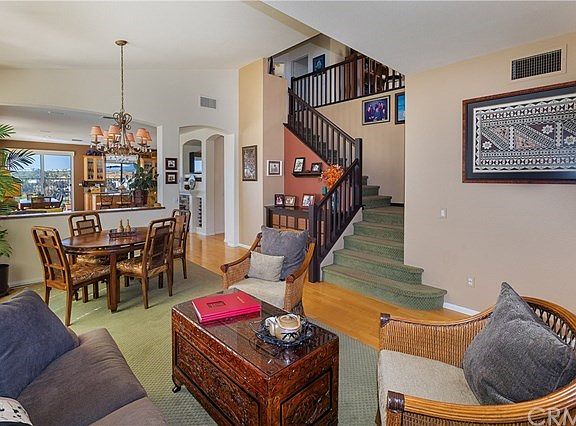 This immaculate home features a beautiful, updated interior. The welcoming porch offers a double door entry into the light, bright living/dining room. The neutral tones of the interior will compliment almost any decorative taste. You'll love the great room showcasing a spacious, comfortable family room with a fireplace and an entertainment niche. The adjacent kitchen has a casual dining area, ideal for large gatherings, and boasts wood laminate floors, granite counter tops, full granite back splash, stainless steel appliances, gourmet island and breakfast bar. The master suite is also located on the main floor with a private bathroom featuring double sinks, a large shower and separate soaking tub. Ascend the stairs to the second floor featuring 2 more bedrooms and a large LOFT. The charming backyard is low maintenance offering a scored concrete patio and scenic views of the surrounding hillsides. The many windows flood the interior with plenty of natural light while allowing for enjoyment of the backyard view of verdant hillsides. Just minutes from the beach at the top of a bluff, this gorgeous home boasts gentle ocean breezes and amazing southern California climate! Welcome home!