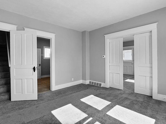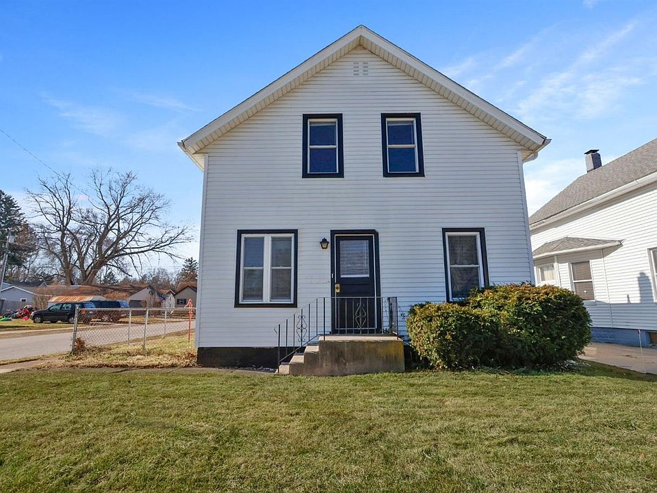Welcome home to your 1.5 style charmer! Situated on a corner lot with a blend of updates this 3 bed/1 bath residence is move-in ready. Step inside to an interior displaying new windows & flooring through the home, brand-new generous bath complete w/ vanity, fresh paint & new light fixtures. The spacious living area connects to the main level bedroom or office which closes off for privacy. The formal dining w/ pocket doors is perfect for entertaining & flows directly into the revamped kitchen, showcasing new cabinets, countertops & appliances. Adjoining the kitchen is a convenient mudroom perfect for storing, sizeable pantry & enclosed porch. Ascending the staircase the massive primary boasts his/her closets & built-in drawers for your wardrobe needs while the other extensive room also contains two closets. The unfinished basement is perfect for storage or expansion. Outside discover a 2.5 detached garage w/ connected patio sheltered by an awning while overlooking the fenced yard.
