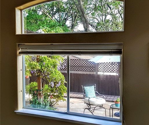 Creston Courtyards ~ This home offers 3 bedroom and 2.5 baths, it is light and airy with volume ceilings, newly installed wood/laminate flooring, The living room has a gas fireplace for cool evenings and ambiance. The kitchen leads to the 2 car garage and the dining area that opens to a flagstone covered patio with a beautiful wisteria covered, pergola ~ great gathering place for friends and family.