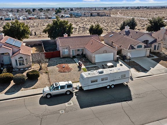 Secluded away in the desert city of Rosamond, minutes from local markets and stores, a lovely 956-sqft single-story home with attached 2-car garage is ready for new memories! High ceilings accentuate the combined dining room and living room with cozy brick fireplace, ideal for all entertaining. The warm palette of this user-friendly kitchen includes tile floors, built-in wood cabinets, neat tile counters, built-in appliances, and a nifty pass-through window overlooking the dining room. Both bedrooms include plush carpet floors, center ceiling fans, and plenty of built-in closet space apart from the largest room which includes two large closets and an attached private bath. As a great plus, the home includes a designated laundry room. The front and back yards are lovely blank canvas primed for a personalized touch. A wonderful gem poised for the taking!