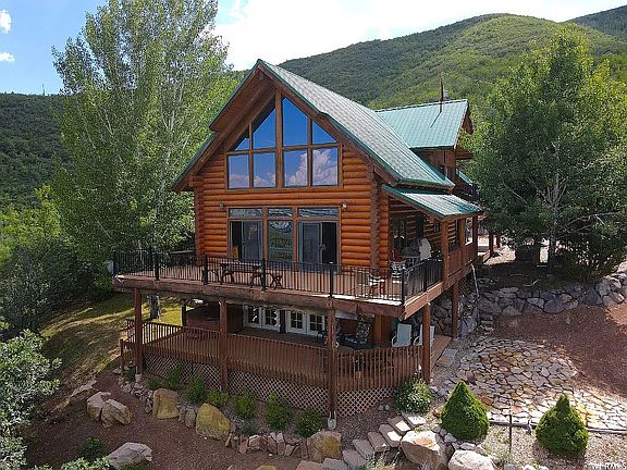This fantastic find is a “Treasure” that will be a family treat for many years! If you have been looking for peace and quiet with VIEWS, wildlife, and amazing recreation opportunities, this lovely log home could be your magical mountain retreat for vacations, reunions, and beating the summer heat - or a wonderful primary home. Located on a hillside overlooking Midway and the Heber Valley, the inspiring views and tranquil, wooded setting provides a type of “world of your own!” A bonus feature is the close proximity to 5 golf courses, blue ribbon fly fishing, spectacular winter skiing, summer boating & water sports, and hiking and biking trails. This is a wonderful opportunity for someone to enjoy this home just as it is, or to take it to the next level with personal vision and imagination! This luxurious log home includes: 4 bedrooms, 3 baths, 2 laundry, 2 kitchens, ceiling fans, large loft with master suit and adjoining decks and walk-out basement. The basement could be a self-contained unit or Mother-in-law apartment. The main floor kitchen includes stainless steel appliances. The log frame has tremendous acoustic characteristics and insulation which bring a relaxing and cosy atmosphere to the house. You will love the spacious open floor plan and amazing views through the full-story windows and decks. This captivating property is enhanced with a 2-story garage over 1600 sq. ft. The unique design will hold all of your vehicles and toys and has a 3rd story for extra storage. The half-acre property is landscaped with trails, water feature, lawn with sprinkler system. We have loved this tranquil setting with cool mountain breeze, wildlife, and unobstructed views. Feel free to stop by to see inside! (Willing to work with buyers agent).