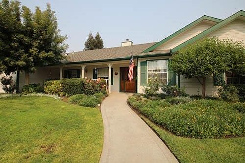 Enjoy the welcoming front porch as you enter this custom home in the popular Reedley Riverglen subdivision. A large corner lot with mature landscaping. Front entry has warm wood floor. High vaulted ceiling in living room with EPA approved wood stove plus large wall of windows to vaulted covered patio. A formal dining off the oversized kitchen makes entertaining easy. No skimping on the size of this kitchen with breakfast bar & eating nook area. Bedroom sizes are amazing. Hall bath has antique claw foot tub. Master bath includes large tub below glass block window, stall shower & 2 sink vanity. Besides laundry Room with Built-in sink & ironing board, home also includes large pantry & half bath. On the back side of home is a attached shop with potential square footage to increase the size of the home. Charming gazebo and fountain completes the back yard.
