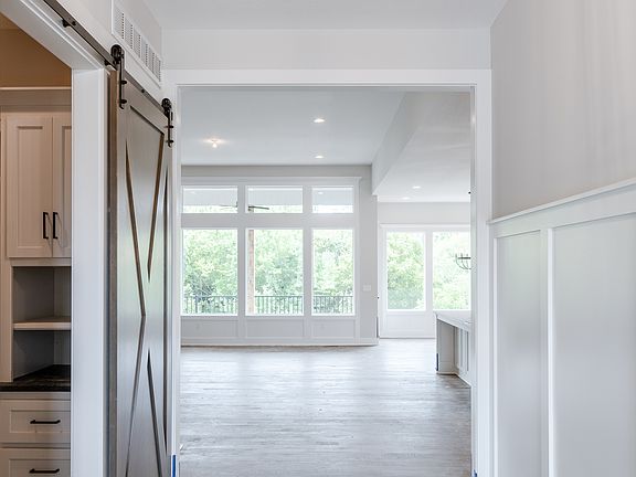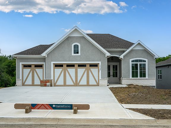 The "Windsor" plan by Inspired Homes at Lakeshore Meadows! The largest Reverse 1.5-Story plan offered. This new home is situated on a private walkout lot that backs to a dense tree line. The main level features a spectacular Great Room (open to the Kitchen) with soaring ceilings and impressive floor-to-ceiling windows. Take in views of the trees while sitting next to your floor-to-ceiling stone fireplace or enjoy nature from your covered composite deck out back! The main-level mater bedroom features a DELUXE master bath suite, which includes a large ZERO ENTRY shower and free standing tub. The gorgeous views continue from the oversized windows along the entire back wall of the lower level of the home! The light & bright kitchen features gas cooking, wood hood & built-in SS appliances. Love Mature Trees? You won't have to wait for trees to grow, this low maintenance backyard is surrounded by trees, peace, & tranquility. Additional NEW HOME DESIGNER FEATURES include matte black plumbing, quartz kitchen island, shaker style custom cabinetry, under cabinet lighting, laundry sink, upgraded lighting fixtures throughout, and both cedar & stone accents at the front exterior! OUTDOOR ENTHUSIASTS love it at Lakeshore Meadows with close proximity to the newly renovated Lake Olathe Recreation Park with marina, beach, extensive walking/bike trail system & lake access for kayaking, paddleboard, swimming & fishing. Lakeshore Meadows is within 10 minutes of grocery, restaurants and KC Winery