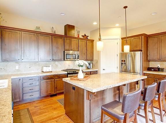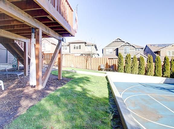 Stunning Bull Mt. home with Mt. Hood views from the rear deck. Excellent floor plan with a gourmet kitchen, granite counters, SS appliances & hardwood floors. Primary suite has a ceiling fan, a soaking tub, and a walk-in shower. 3 upper bedrooms are 12 x 12 plus a bonus room. The bedroom and full bathroom on the main level is a rare find. New exterior paint in 2021 and a new Timbertrek deck in 2018. A fenced yard and an athletic court with an NBA regulation backboard. Open house Sun 1:30 - 3:30