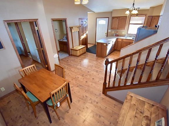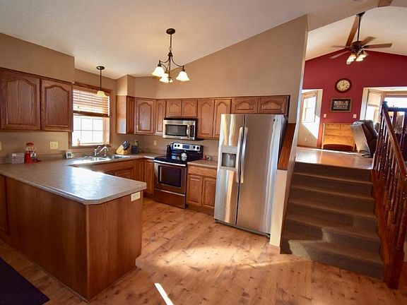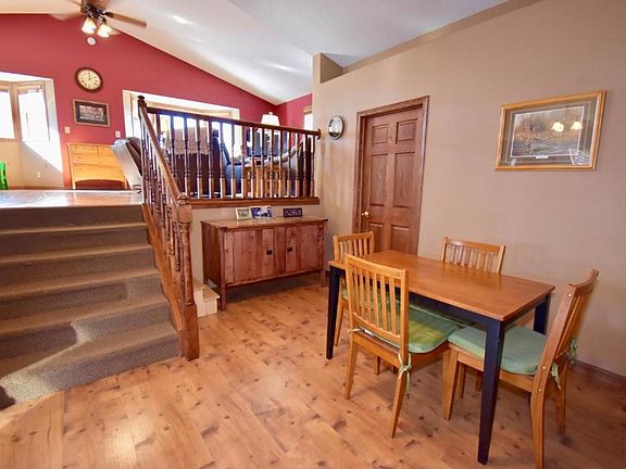Beautiful raised rambler on 5 wooded acres just minutes from Hwy 10. Open floor plan with a huge living room- lots of natural light, formal (with bay window) and informal dining, main floor master bedroom with private bath and main floor laundry. Lower level-rustic feel, vaulted ceilings, kitchenette & large family room walking out to the deck overlooking the abundance of wildlife. Insulated/sheetrocked-attached 28x28 garage, Quonset offering a 3rd garage stall and a garden shed/playhouse.