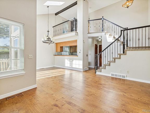Nestled within Quincy Hill, this well-maintained end unit townhouse offers 2 bedrooms, 2 bathrooms, and a loft area, all within the Cherry Creek School District. New windows fill the interior with natural light, while a new sliding glass door connects indoor and outdoor spaces. Stay cozy with the convenience of a whole house fan and air conditioning system. Highlights include scraped popcorn ceilings, new interior paint throughout, updated wrought iron stair banister, and an updated kitchen with newer cabinets featuring convenient pullout drawers, new glass-top range, and solid surface countertops. The main floor features wood laminate flooring, a vaulted ceiling, a gas fireplace with remote control, and a privately fenced patio area. The primary bedroom has a California Closet system with cedar flooring, and the ensuite bathroom has updated cabinets, tile floors, and countertops. Upstairs, there are new white 6-panel doors, and the second bathroom is updated. Noteworthy upgrades include a full plumbing system replacement, upgraded to PEX, and the installation of a radon mitigation system, ensuring complete peace of mind. The attached two-car garage is complemented by an additional community parking spot adjacent to the unit. The unfinished basement, equipped with laundry facilities, offers valuable storage space and potential. HOA benefits include access to the pool, clubhouse, snow removal, trash and recycling services, and ground maintenance. Situated near Cherry Creek Reservoir, DTC, and I-225, it offers access to a diverse array of recreational and urban amenities. Don’t miss out on this opportunity, this home is move-in ready.