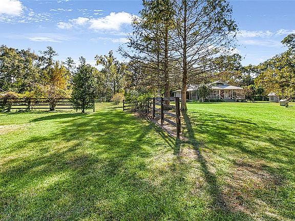Pass through the gate, down the long, winding drive and you'll find a peaceful 9.5-acre retreat with a resurrected center hall farmhouse as the centerpiece. Just a few features of the grounds include a paddock, extensive vegetable garden as well as a serene pond with wooden bridge and gazebo for enjoying. The original 100-year old structure was taken down to the studs and carefully brought to back to life by meticulous owners who had an incredible eye for detail. The very special restoration blended historic charm and bountiful craftsmanship with guidance from renowned architect Richard Caldwell. From the quarter sawn pine floors and custom cypress cabinets to the mahogany windows and reclaimed wood doors, so many elements echo a Louisiana vernacular. The main house offers 3 beds, 2 beautiful baths and a home office. You'll appreciate the huge storage area for farm equipment or personal tools and toys. Guest house contains a small kitchen and two bedrooms. Truly the perfect-sized estate, five minutes to the Giddy Up and only 15 minutes from downtown Covington. This special property must be seen to fully appreciate.