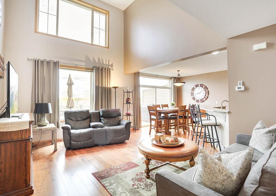 Hard to Find 4 bedroom townhome in desirable Jeffers Pond neighborhood with great privacy. This open concept townhome has dramatic and bright living areas featuring a two-story living room and 26x13 deck overlooking the neighborhood pond. The upper level includes master suite w/ WIC and two additional bedrooms, a full bath and laundry room. In the walkout lower level there is a family room, a fourth bedroom, and storage space. Nearby is the Jeffers Pond Park, local elementary school and fire station. Easy access to 169 or local shopping via Country Road 21 from this well-maintained property.