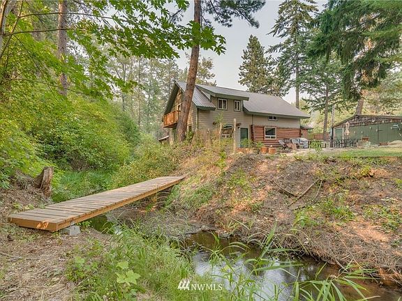 Discover this 2200+ sq ft country cabin set on over 600 ft of idyllic creek front just 6 miles from downtown Leavenworth. Highlights of this 2 bedroom, 2 bath log accent home: A charming kitchen, a spacious dining room with cozy wood stove, perfect for large gatherings; a sunny living room and a generous upper level master suite with private deck overlooking the babbling creek. Outdoor amenities include a patio with adjacent fire pit area, fenced/level acreage, a private well, a sweet seasonal garden, handy storage shed AND a well sized bunk room perfect for overflow guests and/or a private office space. Come..escape the city and embrace country living in Leavenworth!
