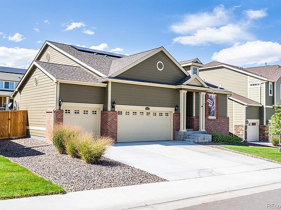 Your next home is in Lewis Pointe! Newer Lennar ranch home, Berkshire model with great open floorplan, 3.5 car garage, solar system, gleaming engineered hardwood floors, 9-foot ceilings, 8-foot doors, beautiful white open kitchen with large island, granite countertops, stainless steel gas range, and stainless appliances. The master bedroom is separate from the other two bedrooms and offers an ensuite 5-piece master bath, walk-in closet and granite countertops. The back outdoor area offers covered deck, 6-foot fence and lush landscaping. Add more space and get creative finishing the basement to your taste! Make this one your next home today!
