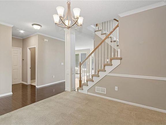 This beautiful two-story home is nestled in the highly acclaimed Blue Valley School District and offers an impressive blend of comfort, space, and updates. Open floor plan, formal dining area, white cabinetry, soaring ceilings. Each generously sized bedroom features a walk-in closet and private baths. Huge master with enormous closet and bath. Major improvements include a new HVAC system (summer 2022), water heater (October 2022), sump pump (October 2023), and attic insulation with spray foam foundation sealing (June 2024). In July 2024, new windows and a stylish front door were installed by Window World—complete with a transferable warranty.