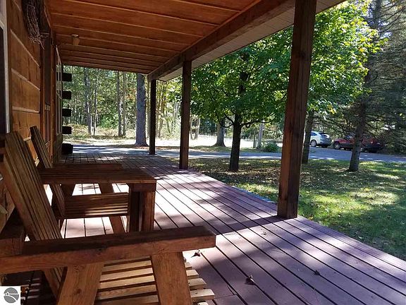 LOG CABIN ALERT!!! Here is the cutest little cabin, starter home or for the retiree. Very well maintained home with wood flooring, newer natural gas forced air furnace and Air Conditioner, 2 covered porches for those relaxing mornings and nights, 2 car garage (that has a loft for storage and is heated), 10 x 12 storage shed, garden area, nice wooded lot. The property is unique that it also has another lot that has electric, well and a small building on it. Could make for a possible building site for a nice pole building, or camping area for friends and families when they come to visit! House is next to the snow mobile trails, close to town, Manistee National Forest, just minutes away from TIPPY DAM, and 25 minutes from Manistee. Come check this little gem out, it will not disappoint!