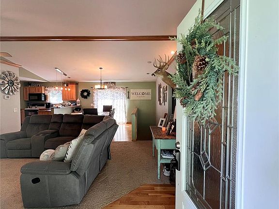 LOCATION LOCATION! Custom built brick home sitting on 3 m/l acres waiting for you! This immaculate home features an open concept floor plan consisting of a large kitchen/dining room and living room. Right off the kitchen you will find a spacious main level laundry room. The large master bedroom suite is on the main level, featuring a double sink, and walk in closet. On the other side of the home, there are two additional bedrooms and a full bath. Just off the dining room, you will find a wooden deck with views of the wooded 3 m/l acres. Downstairs in the finished walk-out basement, you will find an additional sleeping room with a spacious full bathroom and gas fire place. If that's not enough, there's an additional concrete storage space in the two car tuck-under garage. Enjoy the front porch with country views and make this home yours today!