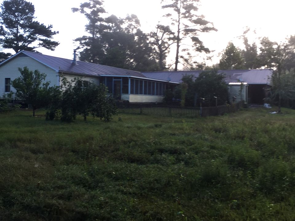 Quite country living. Small pond with bass, bream and catfish. 25'x35' shop attached under same roof. Large screen back porch and full porch across front. Metal roof. Had less than 2' of water from recent flood. Has been gutted, dried and sprayed. Build back the way you want. Fruit trees.