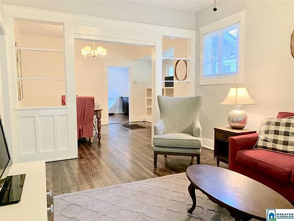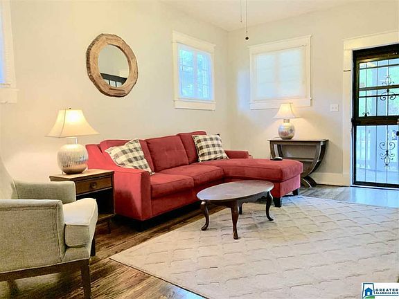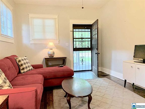 Precious Southside bungalow just a block from the start of UAB campus and a block from Dreamland BBQ. This charming home has ten foot ceilings throughout most and refinished hardwood floors. Opens from front porch into the living room. Large dining room beyond with built-in bookshelves. Kitchen with lots of storage and breakfast room/study that overlooks the Vulcan. Bedroom hall has a full bath with natural light over the shower/tub combo and a bedroom with lots of natural light! Master bedroom with closet. New master bath with double shower heads in the walk-in shower- one is a rain head, double furniture sink, separate toilet room and walk-in closet. Off the breakfast room is a mudroom and separate laundry room with cabinets above and windows for beautiful natural light. Also a door to the covered back deck that overlooks the Vulcan and mountain side. Fenced backyard has exotic plants including a persimmon tree. Basement has space for storage too.