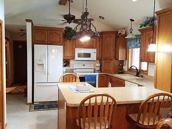 Acreage buyers here it is! 3 bed, 3 bath home on approx 2 acres. You will love the open kitchen to the living room area with vaulted ceilings. Master bedroom is on main level with whirlpool tub, double sinks and walk in closet. The lower level has a walkout to the back yard, bar area, bedroom, good size closet, bathroom and workshop.The acreage has creek going thru.