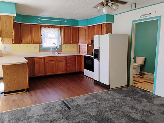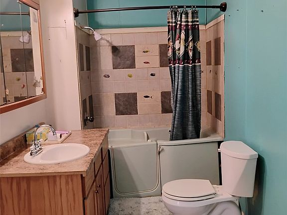 Over 1,400 sq ft of finished living space. Large eat-in kitchen, and large dining room. Great finished attic space for bedroom or office. Full bath has accessible walk in tub. Deck, fire pit area, and 2 sheds. Close to school and rec center. Property being sold "as-is". House needs TLC.