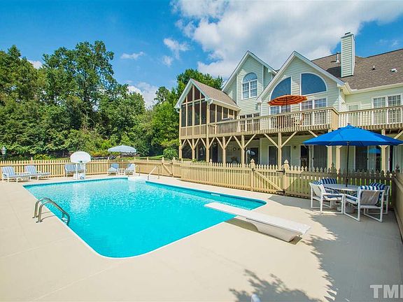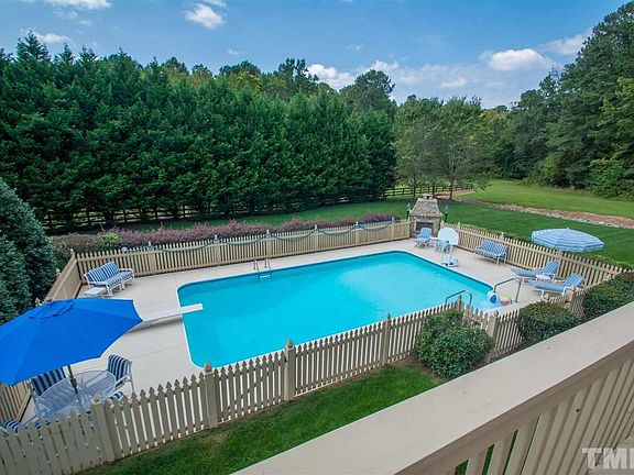 Custom built estate home near Falls Lake offers beautiful in-ground heated pool, & outdoor fire place. Full finished basement w/large private guest room, rec room w/bar & living area w/fire place. Sun drenched vaulted ceilings & stone fireplace in the living rm. First floor master suite. Private well offers free water to run 16 zone irrigation & water spigots. HVAC w/humidifier 2011/outdoor lighting/central vac/security sys/Generator wired directly to house/Convenient to I-540 for easy access to RTP & RDU
