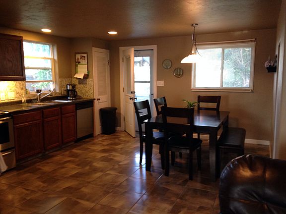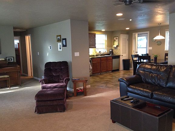 Entertainers DREAM! This one level ranch has a HUGE living room, dining room and kitchen. Stainless steel appliances and lots of counter space make this kitchen a great place to cook and bake. Tile floors in the kitchen, dining and laundry rooms. The living room has gorgeous sculpted carpet. 2 bedrooms and 1 updated tiled bath with a jet tub. Newer windows. Soon to have a new roof. The entertaining space carries out to the back yard with covered deck and patio.