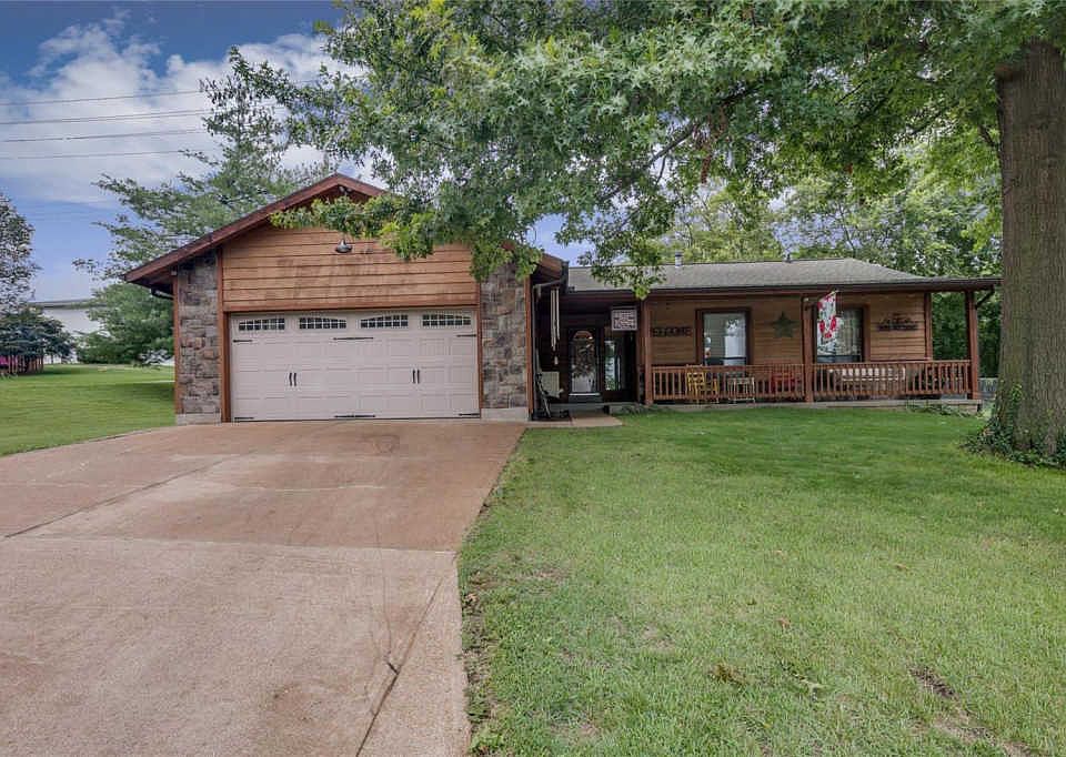Gorgeous cedar & stone ranch offers 3 beds, 3 bths on corner lot! You will love the covered porch that welcomes you into this updated home. Once inside you will notice the engineered wood flooring that spans half of the home & new carpeting in the bedrms. The spacious living rm has a gas stove w/ stone surround & a custom railing for the stair case. You will love the large kitchen that is open concept to the huge breakfast/ dining rm with skylights. The breakfast bar accommodates 4 stools and is a great area to entertain. Walk out from the bkfst room to your large covered deck overlooking a flat backyard w/ extensive landscaping & butterfly garden. Two sty shed / great for storage, hobbies or a she shed! Professionally finished lower level that offers a huge family rm, recreation rm and bonus rm w/ half bath. Additional storage area & laundry. This home has been masterfully updated and taken care of. 2 X 6 construction. Oversize garage with cabinets that can be purchased separately.