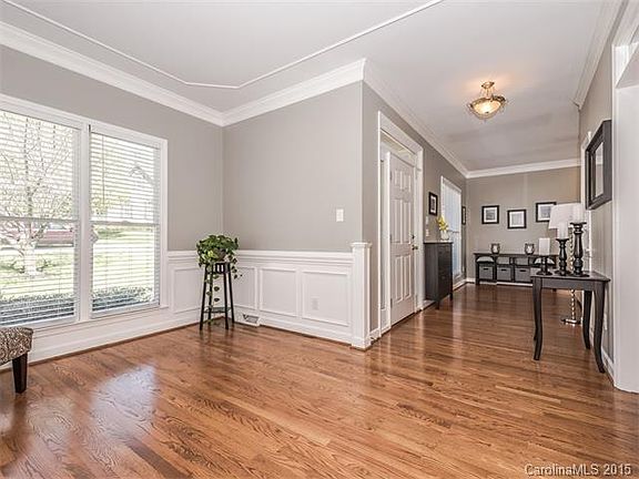 Move in ready home! Warm & neutral on great lot w/wooded backyard. New paint & carpet. Wood floors throughout entire main floor. Elegant crown molding entire main floor plus wainscot in DR. Crisp white kitchen w/blk & SS appls. plus tile backsplash & recessed lighting. Mstr BR w/tray ceiling & fan plus sitting area. MBth w/lovely framed mirror & jacuzzi tub. Lrg vaulted bonus rm over gar. Covered porch & deck plus firepit area perfect for entertaining overlooking flat backyard.