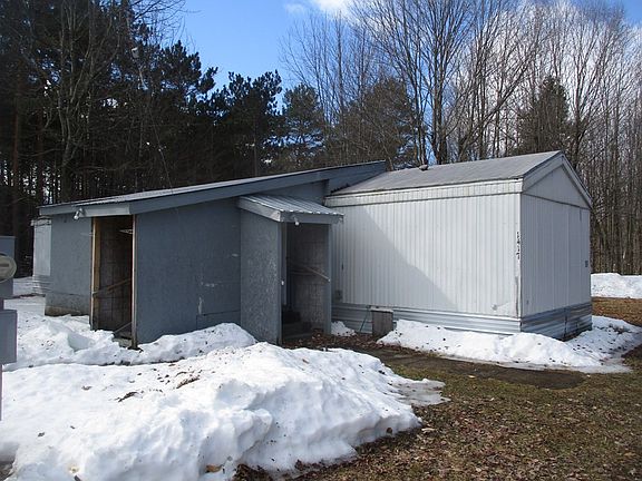 Older mobile home wtih addition for 4th bedroom. Home sits on great lot with frontage on small brook. Home has an enclosed porch and storage sheds. This would be a great getaway or good for a 1st home buyer.