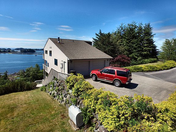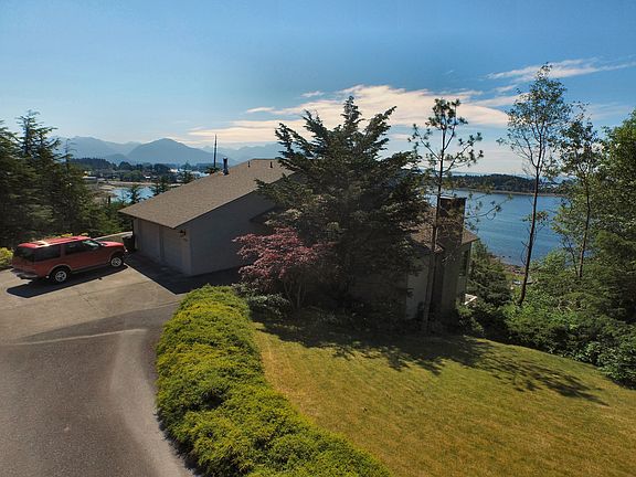 Located high above Halibut Point Road with spectacular views of all Sitka has to offer. Custom designed home with cathedral ceilings, large picture windows, two massive fireplaces, three levels of decks and wonderful outdoor space. Upstairs boasts a large master bedroom suite with walk-in closet and a study or office area overlooking the lovely living room. Downstairs all can enjoy the rec room with access to the deck and front yard. The kitchen not only has amazing views but has a breakfast nook and covered BBQ deck to shelter the Sitka rain. Entertain your guests and family while serving meals in the dining area or simply relax and enjoy views that will take your breath away.
