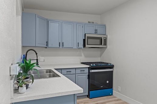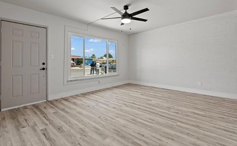 New Lowered Price! Brand New Everything! Nicest House On The Market ! This 3 bedroom 1 bath has 950 sq feet, it has a great lay out. Exiting your carport, you have access to your front door. This house has had a full remodel with vinyl wood flooring for easy maintenance. Next to the kitchen you have a dining area. There is a large gated backyard rock landscape. We are pet friendly. The house comes with a stove, microwave. New wood vanity in the bathroom with new black plumbing faucet. New toilet. New Quartz countertop with cool grey cabinets give a modern look. New black lighting fixtures throughout the house. Central ac works great to keep you cool during the summer months. Fresh paint colors that make this home modern yet cozy. Call today this property won't last long! Tenants pay all utilities. 1 year lease