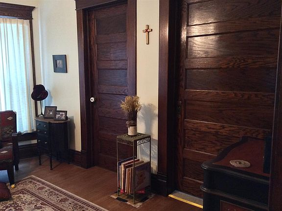 DO YOU LIKE "OLD-STYLE" HOMES WITH LOTS OF NATURAL WOODWORK AND HARDWOOD FLOORS? If so, this one is for you! The main floor has a large living room, dining room with built-in cabinet, kitchen with eating area and all appliances, den/family room, and possible 1st floor bedroom, laundry room, and 1/2 bath. Second floor has 4 bedrooms and updated full bathroom. Fenced-in back yard and 1-car detached garage with extra parking next to garage on the alley.