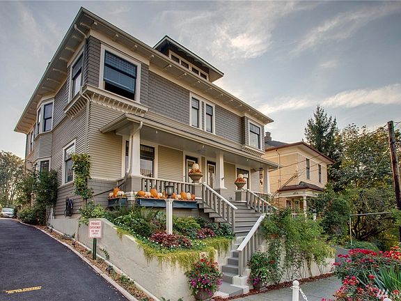Excellent location! Built in 1908, this is not your typical townhome. This Edwardian home has much of the original charm intact. Plus it offers 2 parking spaces in recently paved parking lot. Includes 4 bedrooms with a top floor bedroom/sitting room, 1.5 baths, lots of storage in the basement, formal dining & living rooms with built-ins & hardwood floors. Enjoy sitting on the covered front porch. Walk to everything on Capitol Hill/downtown, buses, train, shops, parks, grocery & more! New furnace.