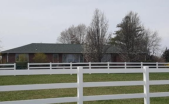 24 hour notice required for showings-Experience the tranquility and beauty of your own country estate with minimal restrictions. Located on 20.4 acres, brick ranch home comes into view after white vinyl fence greets you. Property is completely fenced for your horses and pond is stocked and waiting for you. 40x60 barn boasts indoor riding arena, 5 stalls with feeders and waters there is also and additional older barn on the property. Full Brick home features economical geothermal heating and a/c. The main floor has convenient laundry along with basement laundry hook up. The well and roof are new. Pella Windows and hardwood floors are just a couple more added bonuses to this residence. Basement bathroom finish can be negotiated. Seller is offering 1 year home warranty- pictures are from 2015