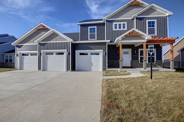 New quality construction. This beautiful 2 story home located in Fieldstone offers 4 bedrooms, 3 and a half baths and over 2300 square feet of living space. The main floor offers a large leisure room that opens into the fully applianced kitchen, complete with island and built in table and pantry. The owners suite has custom wet room which combines the shower and tub together, double vanity and walk in closet. There is a library, laundry with built in lockers and a half bath. The second floor hosts a second on-suite, loft, a 3rd full bath and 2 generous sized bedrooms. Enjoy entertaining on the rear patio highlighted by a built in gas grill and pergola, all overlooking the lake. Convenient to the U of I, airport, shopping, dining, golf course and parks. Additional offerings include a 3 car garage and unfinished basement.