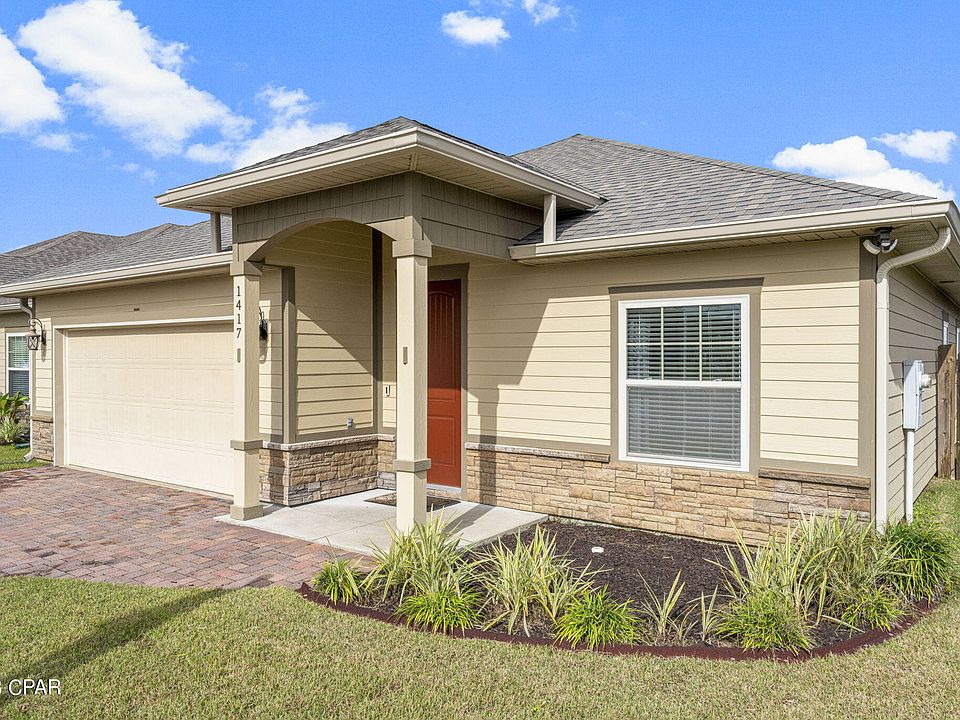 Back on Market - no fault of seller! Welcome to this inviting 4-bedroom, 2.5-bathroom beautiful Craftsman-style home. Centrally located, this property offers both comfort and convenience to surrounding schools, parks, and restaurants. The interior features an open concept living space with tile floors and carpet throughout the living room and bedrooms. The kitchen is equipped with stainless steel appliances and sleek granite countertops, perfect for cooking and hosting gatherings. The primary suite is generously sized and features double vanities in the primary bath, along with a spacious shower. Three additional bedrooms provide plenty of space for family members and guests. Step into the fenced backyard for outdoor enjoyment and privacy. The location is ideal, with schools, restaurants, and City of Lynn Haven all within close proximity. Don't miss the opportunity to explore this home. All measurements are approximate, buyer to verify any information deemed important.