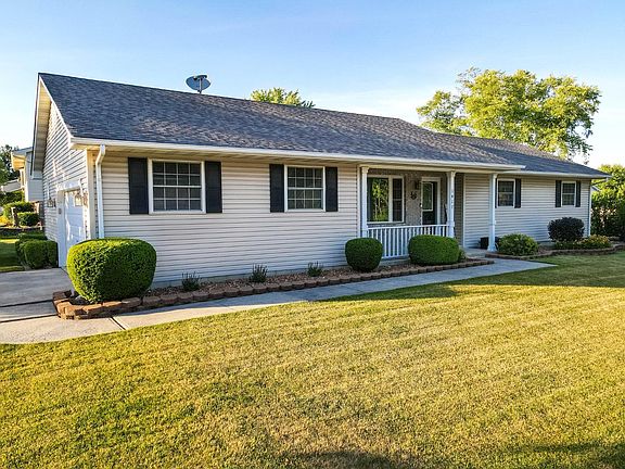 Beautifully updated and well maintained ranch home located on a large corner lot. When you walk up to the front of the house you are greeted by a charming covered porch that is ideal for relaxing. As you enter the home you will immediately notice the vaulted ceilings and beautiful new flooring that extends throughout the majority of the home. The kitchen is beautifully updated with newer cabinets, countertops, and stainless appliances. The living room and dining area are nice and open with a shared peninsula fireplace. On one end of the home you will find three nice sized bedrooms with new carpet and two full bathrooms that have been updated. On the other end of the home you will find another quaint living area with a second fireplace. This then leads you out to the two car attached garage and wonderfully landscaped yard. The back features a main larger deck plus a separate deck off the master. HVAC replaced May 2022 and new roof in 2017. This one won't last long so don't wait