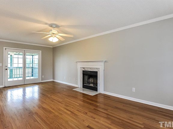 This Raleigh two-story home offers a fireplace, hardwood flooring, granite kitchen countertops, stainless steel appliances, and a two-car garage.