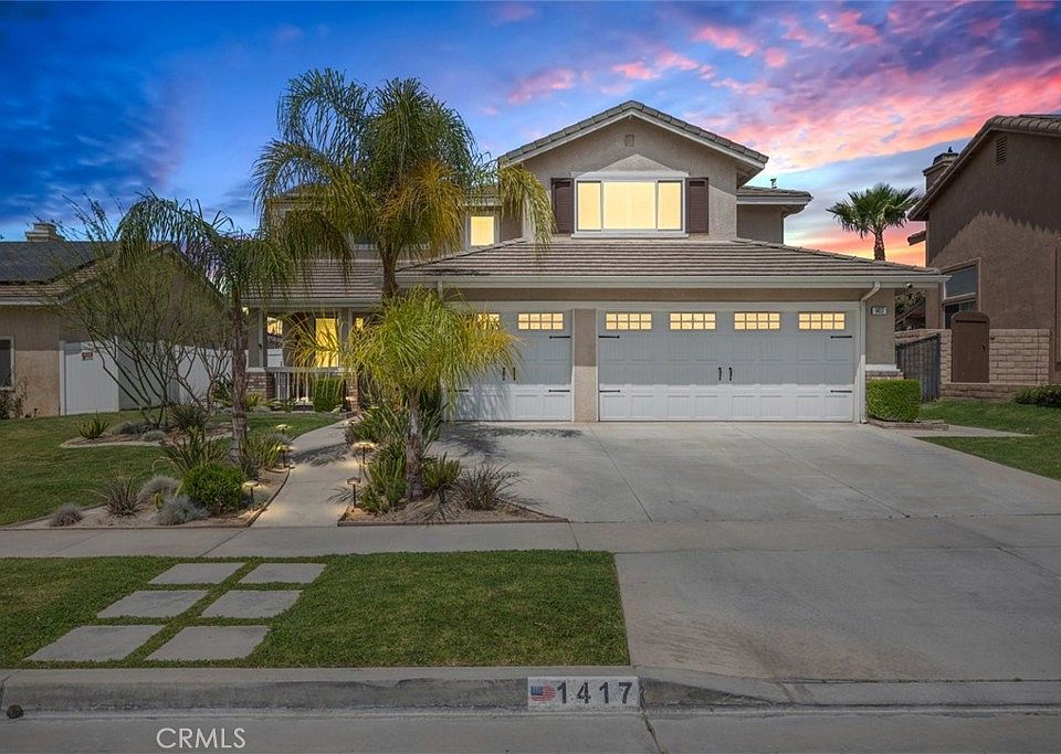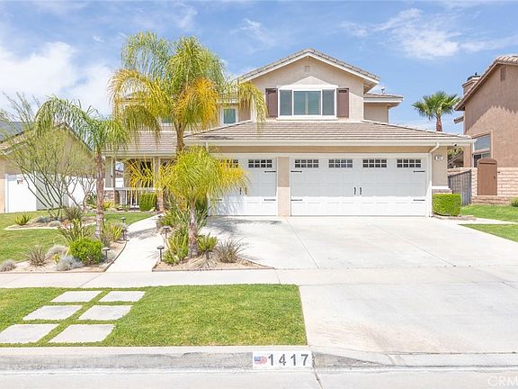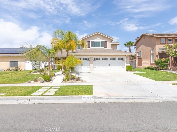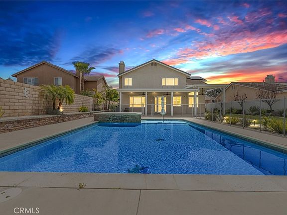 Walking up to the home, you're welcomed by beautifully maintained custom landscaping and a large front porch perfect for summer nights or morning coffee. Enter into a bright and open layout with freshly painted walls, upgraded lighting fixtures, and tons of natural light coming through brand new dual-pane windows. The large formal living and dining rooms are perfect for entertaining or relaxing. The kitchen has been upgraded and opens directly to the family room, which features a cozy fireplace and access to the backyard, creating the perfect indoor-outdoor flow. One of the highlights is the full bedroom and upgraded bathroom downstairs, ideal for guests or multigenerational living. As you head up the staircase, you’ll notice the custom wainscoting and wrought iron banister adding a clean, stylish touch. Upstairs features luxury vinyl plank flooring, an upgraded guest bath and powder room with modern finishes, and generously sized bedrooms, each with custom closets for smart storage. Out back, you’ll find a gorgeous, resort-style retreat complete with a heated pool, new pool motor and filter, upgraded lighting, and an Alumawood patio cover for shaded comfort. A beautiful wood gazebo sits off to the side, and the backyard views are wide open—perfect for relaxing or hosting friends and family. The exterior of the home is just as impressive, starting with a freshly painted facade and continuing with a paid-off solar system, new HVAC, insulated garage door, and newly insulated interior walls to help maintain comfort and lower energy costs year-round. The garage offers built-in storage, great for tools, seasonal items, or hobbies. As an added bonus, the detached office casita offers its own private space with a dedicated air conditioning unit, making it ideal for remote work or a creative studio. No HOA and low taxes! Close to 91, 15, 71 freeways. Call today for a private showing!