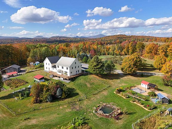Graceful 27.3-acre farm with stunning Burke Mountain views offers a rare combination of beauty, functionality, and sustainability. The land features open fields, pastures, wooded areas, a stream, and a pond, all thoughtfully cultivated with years of sustainable farming practices. Orchards boast 40+ fruit trees, and extensive berry gardens, a raspberry patch, native berry orchard, 28+ raised beds, and 4 gardens. Additional highlights include a 100-tap mature sugarbush, native plantings, lilacs, hoop house, greenhouse, and multiple barns for animals, equipment, and storage. The impressive 5,000± sq. ft. residence offers 5 bedrooms, 5 baths, and views in every window. A wraparound new Trex deck, walkout basement, and oversized 2-car garage enhance convenience. Inside, wood and tile floors flow throughout, with wide king plank flooring upstairs. The main level features an open kitchen/dining/living layout with granite counters, bay windows framing stunning southern mountain views, laundry, and 2 baths. The second level hosts the primary suite with tiled shower and spa tub overlooking Burke Mountain, plus 3 more bedrooms and full bath. A third-level bonus space and large family room over the garage provide versatility. A root cellar, canning kitchen, and walk-in basement complete the home. Located just 12 minutes to Burke Mountain, 10 minutes to Lake Willoughby, and minutes to Kingdom Trails, this remarkable property offers an unmatched lifestyle in Vermont's Northeast Kingdom.