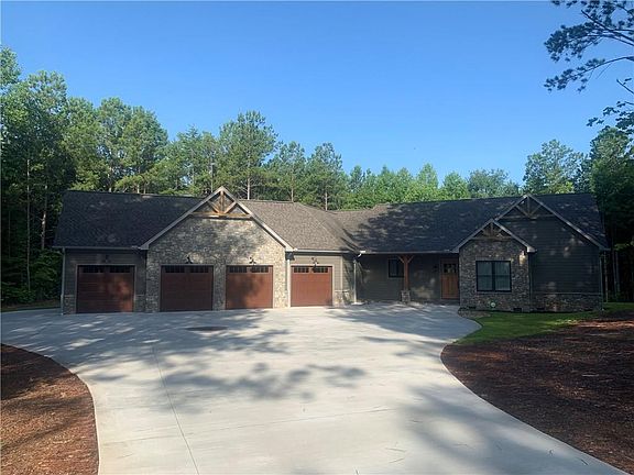 This private country home built in 2017 comes with 10.71 acres of wooded land. This single story home has 4914 sqft including the 4 door garage with individual door stalls, Sun Room, front porch, and back porch. The design includes the highly desired open floor plan concept with the family room; kitchen and dining area all open in one large room for a nice flow. The main living area is set up for entertaining or watching the game on 3 different TV's while relaxing under two 72 inch ceiling fans. All counter tops made of level 3 granite and custom built cabinets throughout. The home includes two separate over-sized master bedroom suites with stand up showers, custom tile and large walk-in closets. All interior doors are real wood 8 foot tall and balance well with the 10 foot ceilings. There are 5 inch solid oak flooring planks, custom tile and wood trim throughout the home. The spacious kitchen offers a rock bar, custom cabinets, Brizo faucet fixtures, copper sink, granite counter tops, top of the line stainless steel range hood, refrigerator, dishwasher & gas stove. An office or additional bedroom is located near the front door entrance. Series 400 Andersen windows and French doors open out to the porches for entertaining inside and outdoors year round. One porch offers a rock fireplace with a cedar mantel, custom flooring, rustic ceiling fans, Eze-Breeze windows to close off the elements winter or optional screens to open up in the summertime. The other cedar beamed porch is open to the outdoors and relaxation to nature and wood lined trees. All porch ceilings are tongue and grooved wood trimmed adding to the outdoor feel of nature. The concrete paved driveway extends 380 feet off the road offering peace and quiet in the woods. Driving up to the house you will see a welcoming 42 inches wide hardwood front door for making moving in easy. The exterior walls are dressed with low maintenance hardiplank and river rock combination with a 30 year architect single roof. In fact, the house and grounds were designed for low maintenance living with a centipede sodded lawn to care for and the natural wooded trees provide the privacy. Explore nature in your back yard where the deer & turkey visit frequently. This land is registered on the South Carolina registry as a SC Century Farm. The farm once produced cotton, corn and strawberries, but now all nature restored to the nature woods. Commute is 5 min to Clemson Univ. & Lake Hartwell, 10 minutes to Lake Keowee & only 20 min to Anderson or Easley. Other: No subdivision or HOA fees. Gas heat, hot water heater and stove. Warm water recirculation unit installed and hot water heater still under manufacturer warranty. Insulation: Attic R38, Floors R30, Walls R17 Family room and bedroom suites wired for surround sound speakers and each bathroom suite has in ceiling speakers installed. Rear porch and garage also wired for sound. Smart-house wired for home network throughout the house. Owned by Licensed Real Estate Agent.