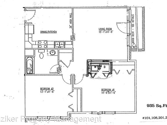 - Total interior livable area: 955 sqft