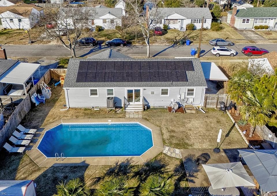 Welcome home to this beautifully renovated ranch just a short distance from the beach in one of Ocean View’s most desirable neighborhoods. This 4-bedroom, 2-full-bath home offers coastal living with modern comfort, featuring all major systems and kitchen appliances less than five years old. The roof and HVAC system are also under five years, and solar panels add energy efficiency and long-term savings. Inside, enjoy a functional, updated layout, primary bedroom, new flooring, and a brand-new washer and dryer combo. Step outside to an incredible backyard oasis with lush landscaping, mini palm trees, a 10x12 gazebo great for entertaining or relaxing, and a stunning saltwater pool. A privacy fence with a recent extension and double swing gate provides added seclusion and convenience. Located close to the beach, military bases, and local amenities, this move-in-ready home delivers the best of Ocean View living—comfort, location, and lifestyle.