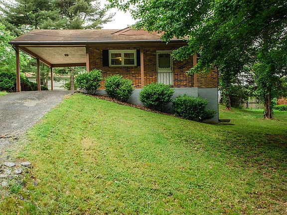 Sturdy brick ranch home Blue Ridge Farms just a short walk to the nature trails and fields at Peaks View Park. Stay out of the rain, park in the carport and come right into the kitchen from the side door. The front door on the porch enters into the living room. Down the hall is the full bath and three bedrooms. The basement offers another den that is mostly finished with white cinderblock walls and a sheetrock ceiling. The second full bath is off the basement den. The unfinished side of the basement has tons of storage area and the laundry center. The home features newer replacement windows and doors, heat pump for central heating and cooling, outside storage shed, paved driveway and a large patio area for parking a car or use it for a patio. Call today for a showing.