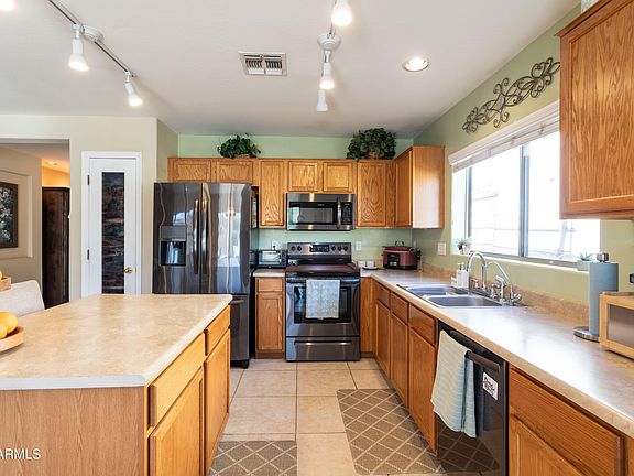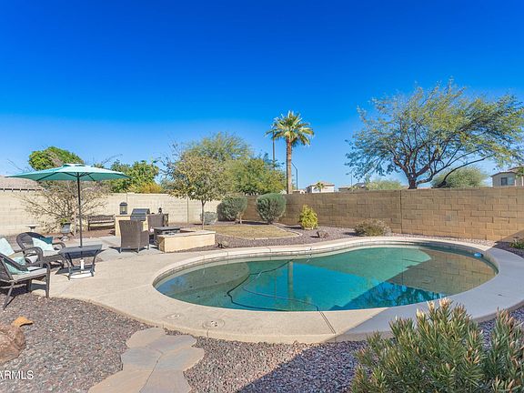 Former model with extra bells and whistles. EXTRA DEEP garage nearly 24'. Recessed lighting, crown molding, surround sound T/O entire home, RO & water softener. Pool pump replaced 2019, Pool cleaner replaced 2022 and all appliances newer. Beautiful over sized tile, ceiling fans in all rooms. Master w/ spacious walk-in closet. Split floorplan. PEBBLE TEC pool ready for your enjoyment. Very gently lived in. Come see this sweet gem!