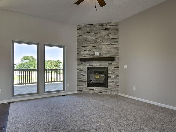 This brilliant open floor plan w/ large living, kitchen, & dining area will blow you away. It boasts a spectacular floor to ceiling stone fireplace & large covered deck! Main floor also includes laundry, drop zone, great master suite w/ big closet & impressive bath, 2 additional bedrooms & 2nd bath. Add to that a finished walkout basement w/ 2 enormous bedrooms, a 3rd bath & tons of storage room!!