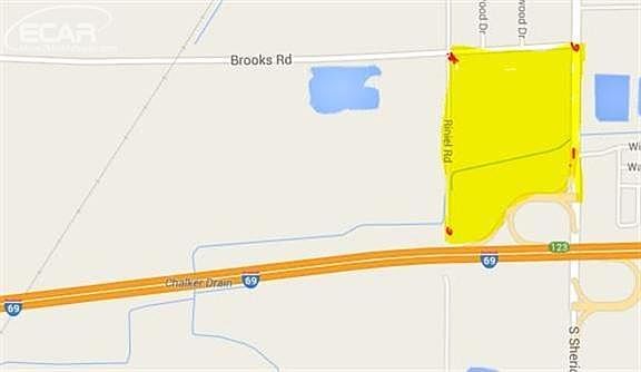 Located in the North West Corner of I-69 and M-13 State Road. 1,320 feet along I-69 and 1749 Feet along M-13, up to Brooks Rd. Sewer Available at Brooks Road. Will divide, Great piece of land for large Establishment like Meijer, Truck Stop, Costco, Cabela, etc. Tremendous exposure to an area of rural housing with convenient access from Durand, Lennon homes and residents from Corunna and Owosso.