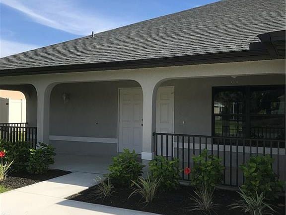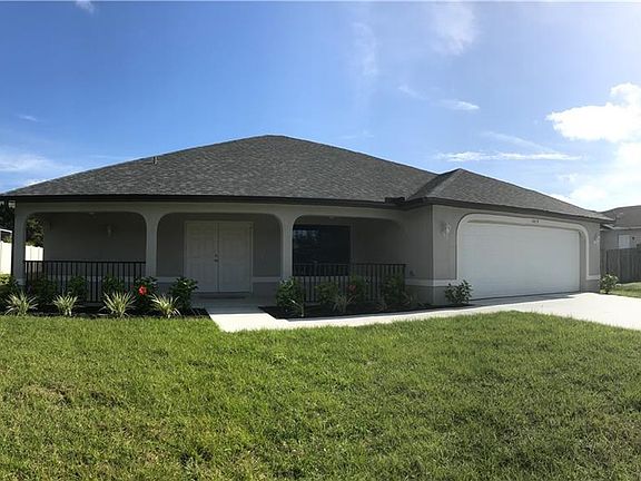 Brand New 2018 Built home on central water & sewer in SW Cape Coral!! With over 1700 square feet of air conditioned living area with 4 bedrooms and two full baths this home is great for those needing additional bedroom space, Or use the 4th bedroom for an office/Den/Playroom. Over size lanai with a cabana/pool bath which is great for a future pool. Home has tile throughout with carpet in the bedrooms. Real wood cabinets feature soft close drawers and doors, granite countertops kitchen & baths - kitchen cabinets crown molding is a nice bonus! Stainless Steel appliances! One of the nicest features of this home is the extra large front porch area to enjoy being outside on days the weather permits. A double door entry system makes moving in a breeze. Home equipped with metal hurricane shutters for windstorm safety - helps save on insurance. Make your appointment ASAP to view this beautiful home! Also available and completed is a similar home - same exact floor plan with different color cabinets, different interior & exterior paint colors.