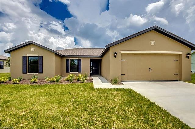 Home is under-construction and the expected completion date is September 29, 2017. The Brand New Fiesta Key floor plan is located in the beautiful Cape Coral. This spacious one-story home features 3 bedrooms, 2 baths, and is 1,522 square feet with a 2 car garage. Included in this beautiful new home, are new appliances, custom cabinets, an extensive lanai, sprinkler system in front and back yards, and a Homeowner Warranty.